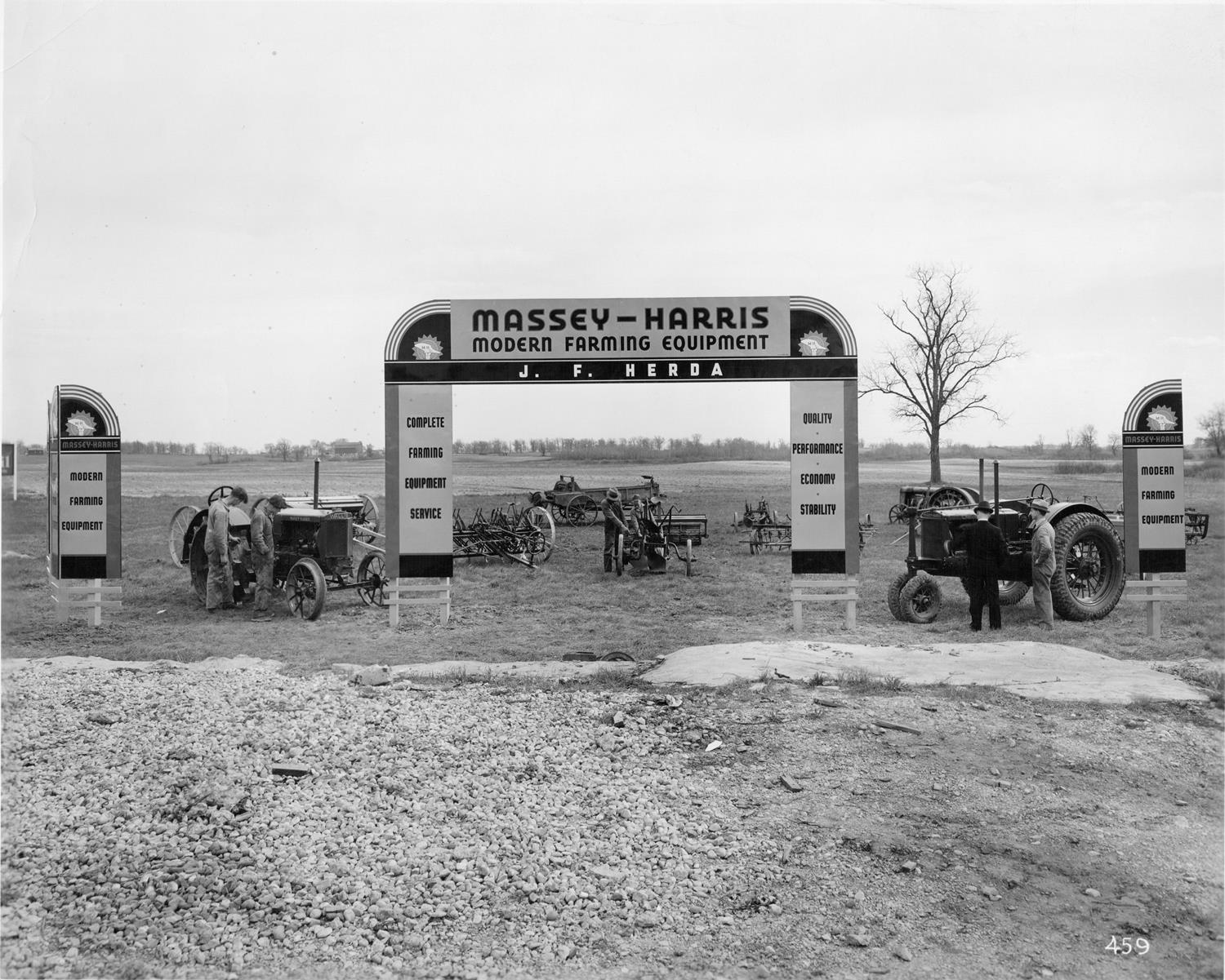 Here is a very recent picture I got from Bob, this is a much earlier picture of the Massey Harris sign that was in the post with the tractors. The other picture with the tractors had snow on the ground so it was in the fall time. This picture must have been taken when the Massey Harris sign was first put up possibly in the spring time, It was dated March 5th 1927. The most interesting thing I noticed about this picture is they must have torn down a building or were leveling some land or filling in a hole when this picture was taken. I noticed the rip rap rock on the ground and pieces of wood and debri but the thing that cought my eye was the gas engine burried right in the middle under the Massey sign. When I was growing up my Dad was notorious for this kind of thing. He burried anyting he could find so he diddn't have to pay for fill being brought in. I really like the Massey furrow lift plow the boys are looking at under the sign.