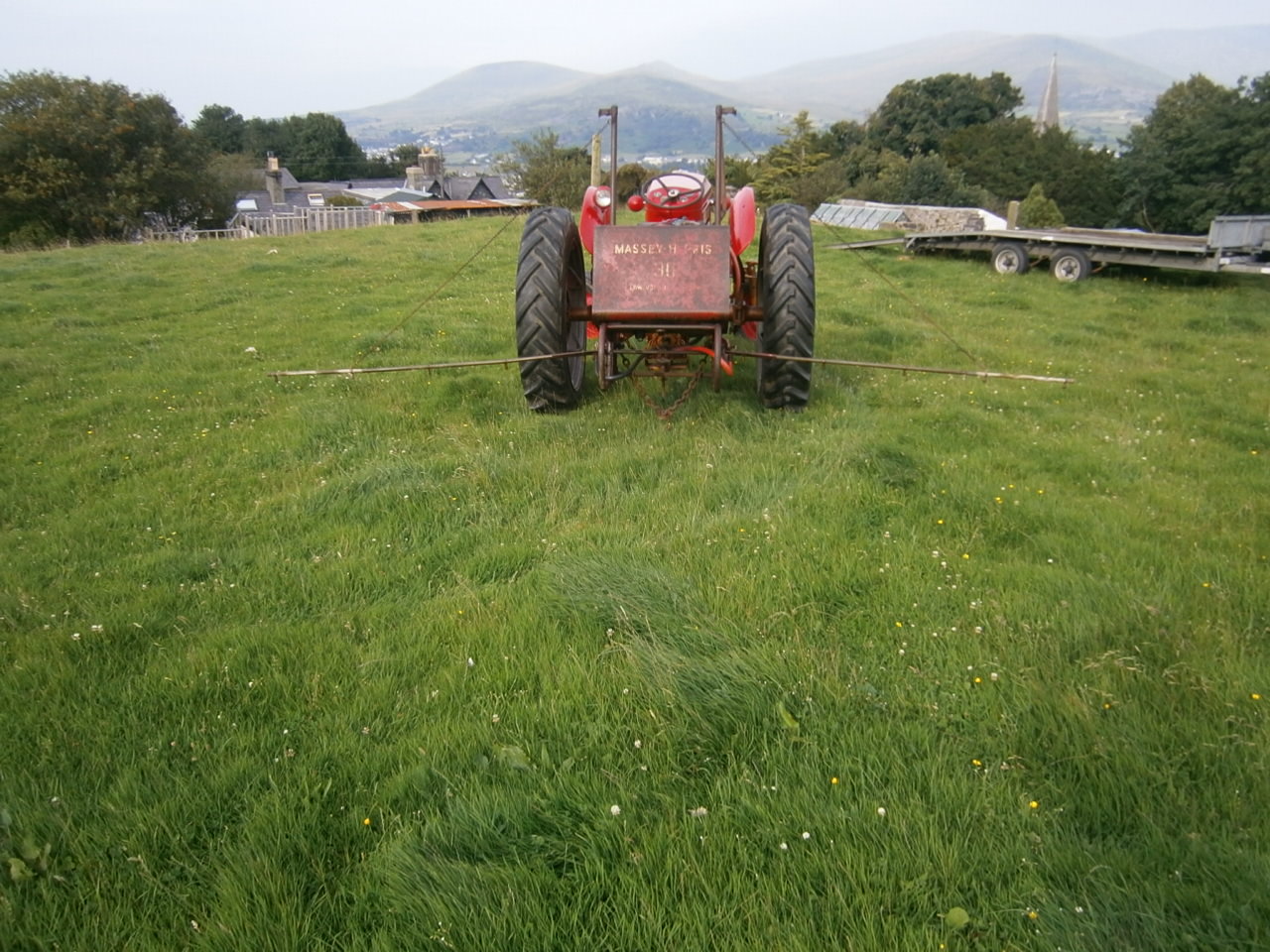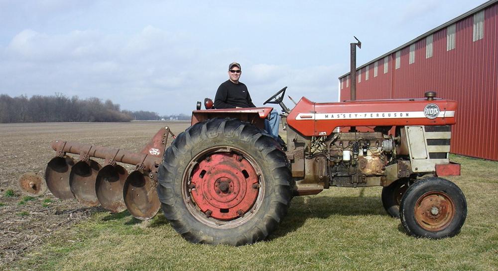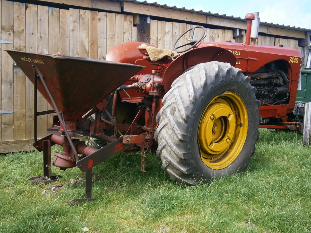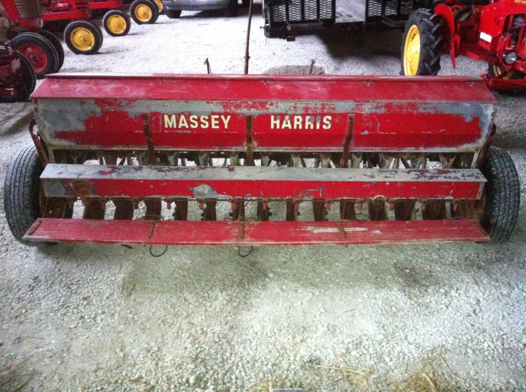 Well, this is newer than most of the implements in this thread, and it's MF and not MH, but still part of the family. The latest piece of equipment to arrive here at the farm. "Little Brother" decided he didn't have room for it, so he brought it over here from Ohio earlier today. (I traded him some cash for it.) He insisted on seeing it mounted on one of the tractors, and the 1100 seemed most appropriate. Here it is with Jeff at the wheel.