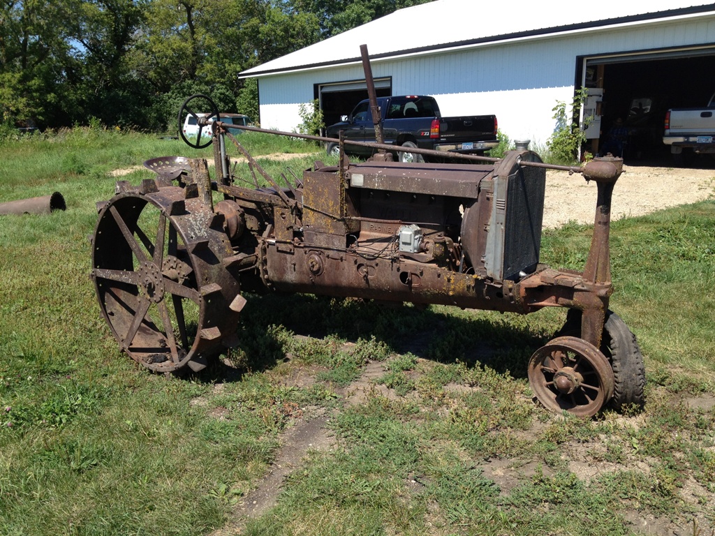 The tractor pictured is not quite a Cub Jr but I did buy several parts for a JR. The complete tractor started life as a Wallis K. Now it has been very modified. some of the added options are Packard honeycomb radiator, challenger front end, two oil pumps and oil lines running all over, external turning brakes, widened rear axles, nice comfortable spring mounted seat, and several other extras like part of a tree.