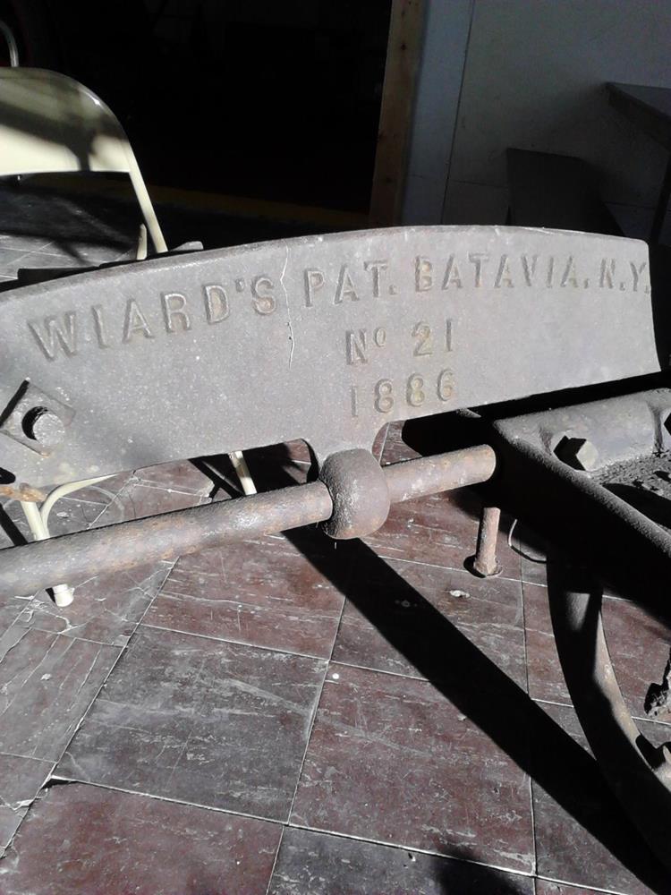 I hope Dennis and Suzie is keeping track on this site, if so please cast your mind back to last September and the Erdle auction in Canandaigua, I recall seing in the long line of tractors in the weeds an arched cast iron axle with lifting handles each side and a pair of wheels with a style of hub and spokes I had not seen before, the Wiard name and address was cast into the arch axle.