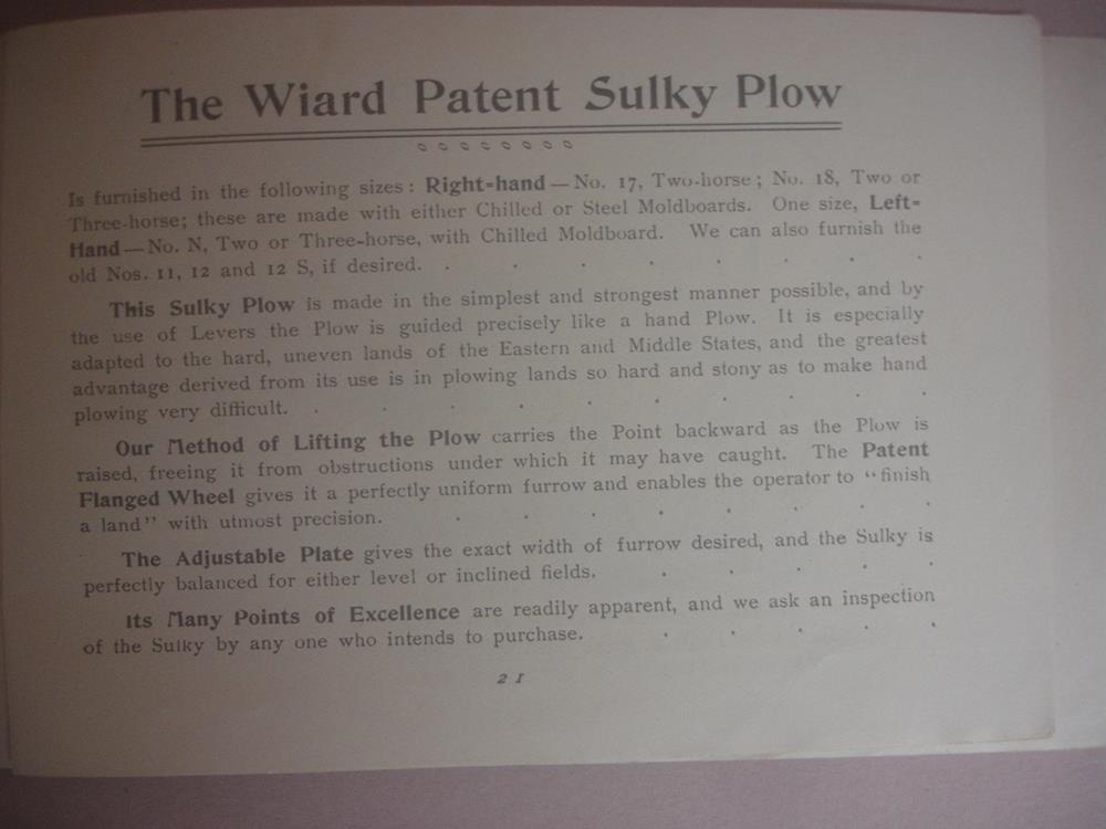 Well this weekend whilst browsing my Wiard literature I think I have found the implement it was from in the 1893 catalogue, this catalog charts their production from 1804 to 1893 and the listing of the Patent Silky Plow with what looks like a wooden beam seems to fit what I recall seeing in Canandaigua.